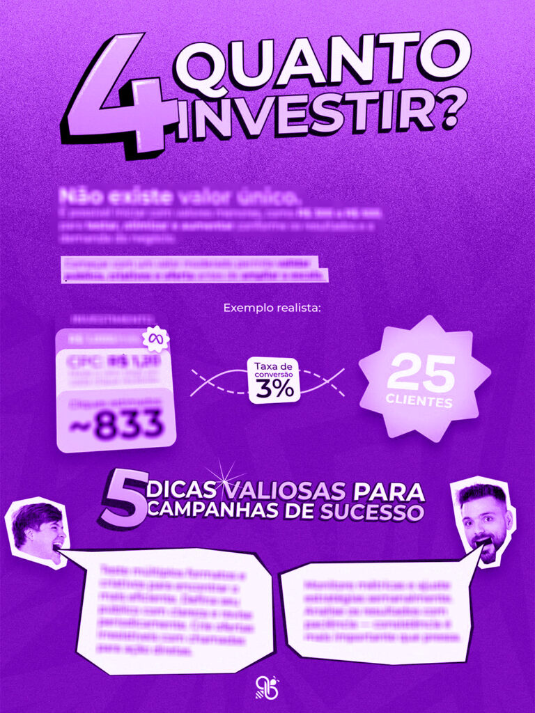 "Aprendi a parar de impulsionar post e montar campanhas de verdade. Em 7 dias já vi lead entrando com custo baixo."